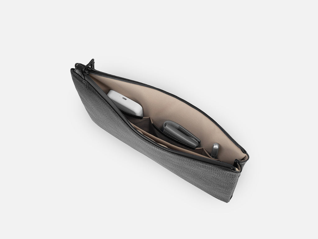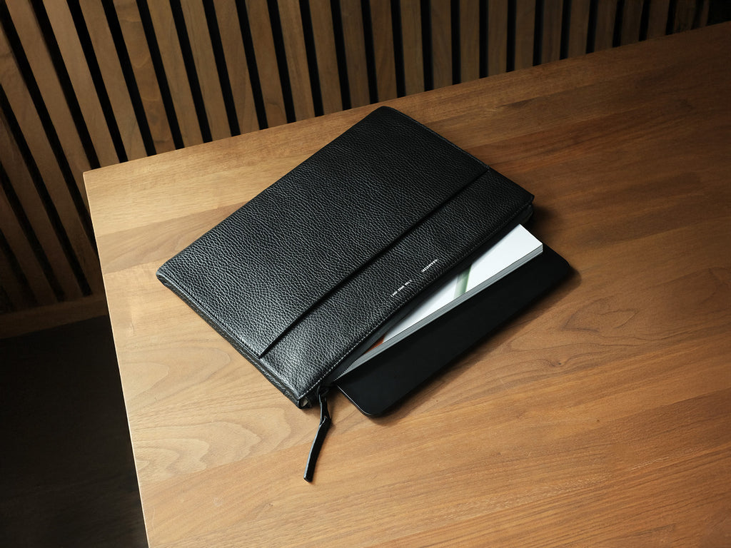 A Folio to elevate your work routine. The spacious interior has a padded sleeve for your device, along with organisational pockets for your work essentials like a charger, cables, phone and pen. Its slim and sleek build makes it the ideal case for carrying your tech on the go.