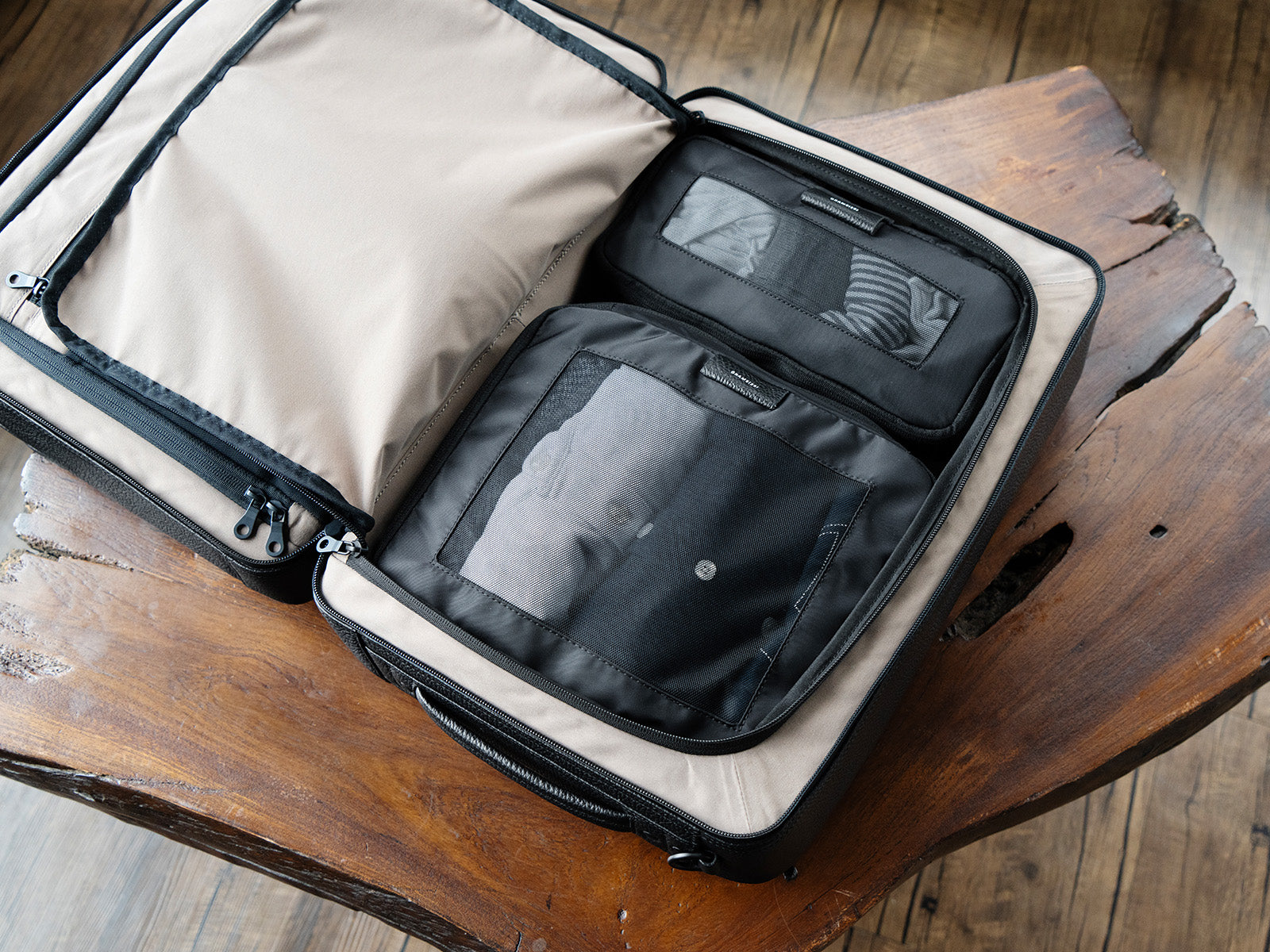 Die 182 Bento Duffle lässt sich wie eine Muschel öffnen, so dass Sie den Platz im Inneren voll ausnutzen können. Legen Sie den Seesack auf eine flache, offene Oberfläche und nutzen Sie sein geräumiges Design mit Packwürfeln oder Organizer-Beuteln. Am Zielort gelangen Sie mühelos an das, was Sie brauchen.