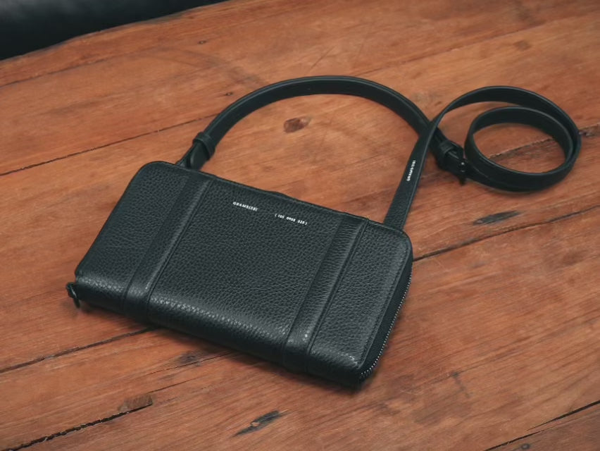 Diese All-in-One-Brieftasche, die auch Platz für Ihr Handy bietet, kann frei über der Schulter oder mit einem Armband am Handgelenk getragen werden.