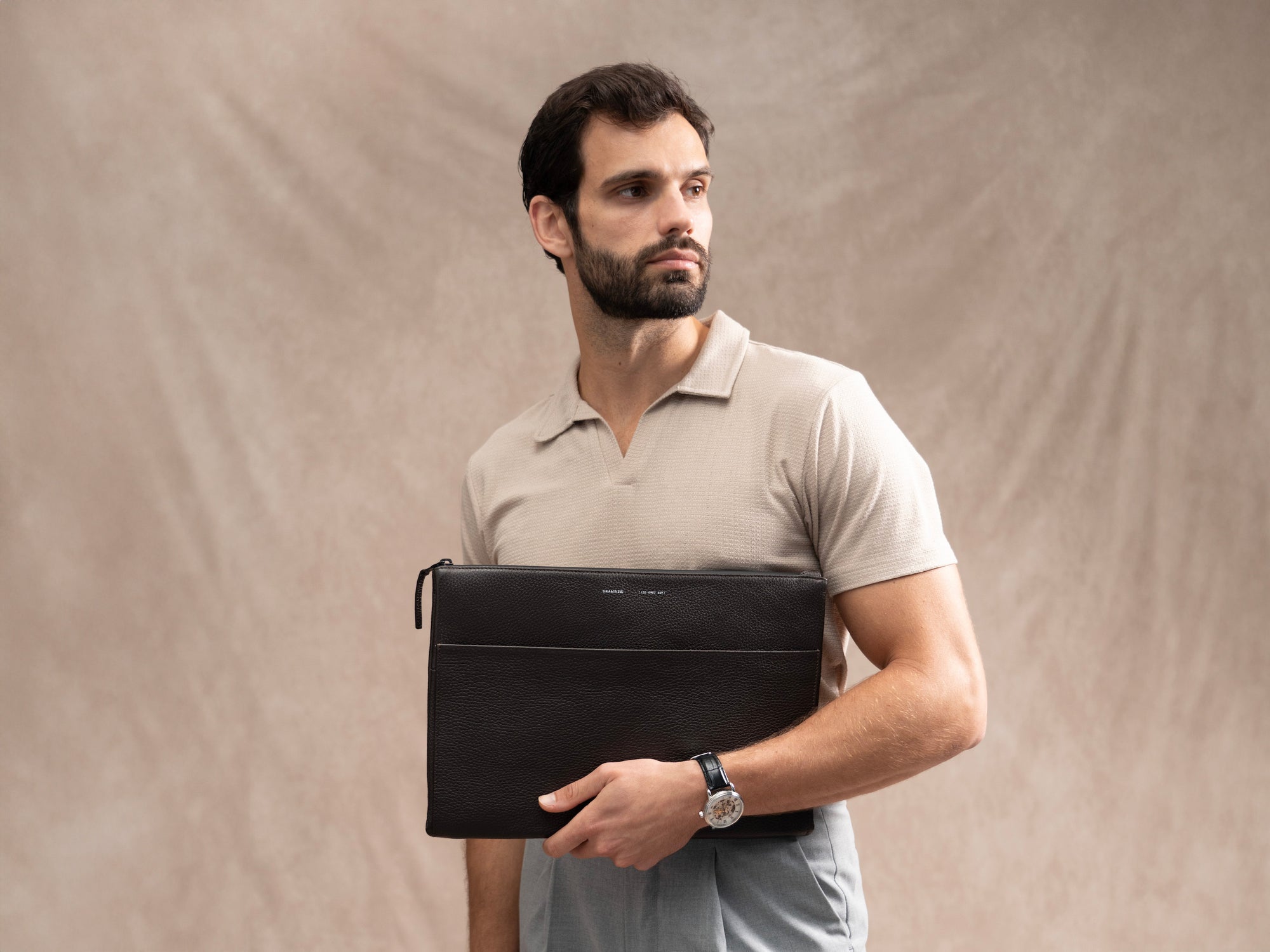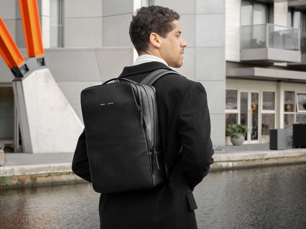 Le sac est minimaliste avec des détails bien pensés, des poches pour les accessoires, une section pour les cartes de visite et un compartiment pour l'ordinateur portable pour une protection et un accès rapide.