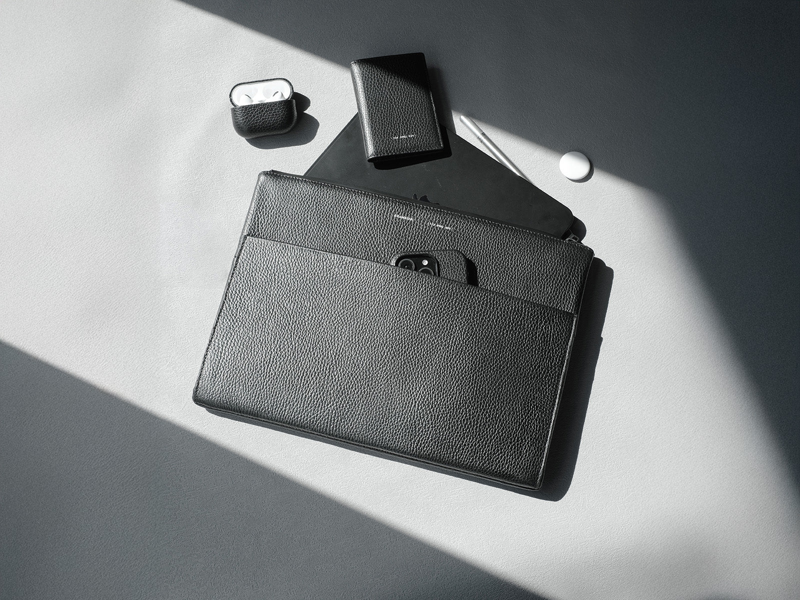 仕事のルーティンを格上げするフォリオ。広々とした内部には、デバイス用のパッド入りスリーブと、充電器、ケーブル、携帯 、ペンなど、仕事の必需品 整理して収納できるポケットが付いています。スリムで洗練されたフォルムは、ハイテク機器を持ち運ぶのに理想的なケースです。