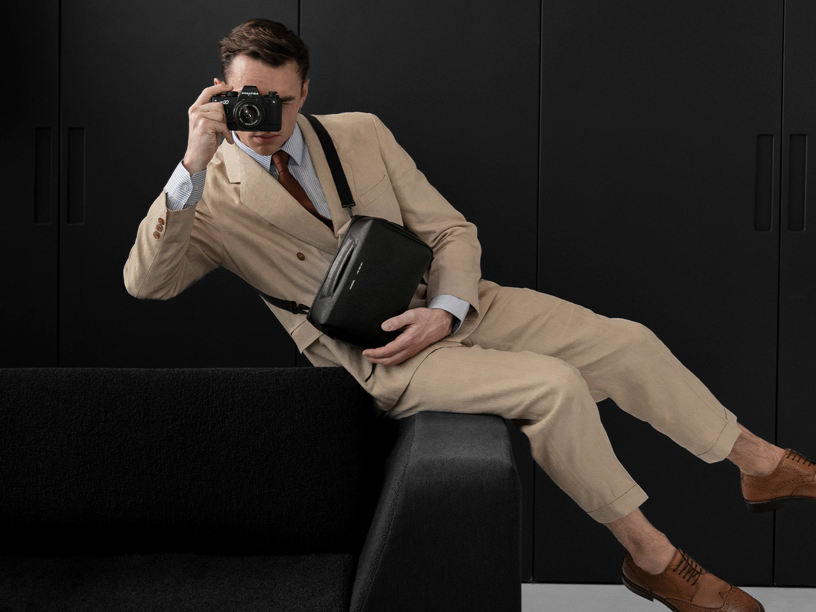 A organiser ideal for tech carry for travel. Fits a full-size camera and doubles as a sling.