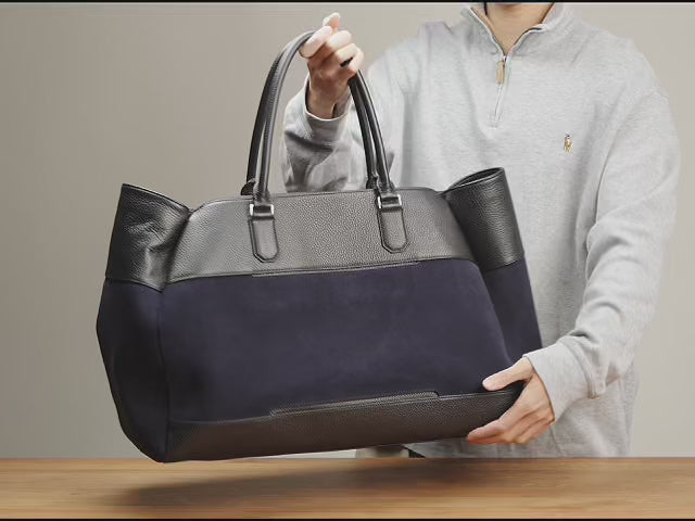 The 184 Weekender Tote features a distinctive two-tone leather design, balancing the use of pebbled leather and suede leather for an understated yet modern appeal. Paired with its spacious build and carefully considered silhouette, this bag can be styled with a variety of looks and used for journeys near or far.