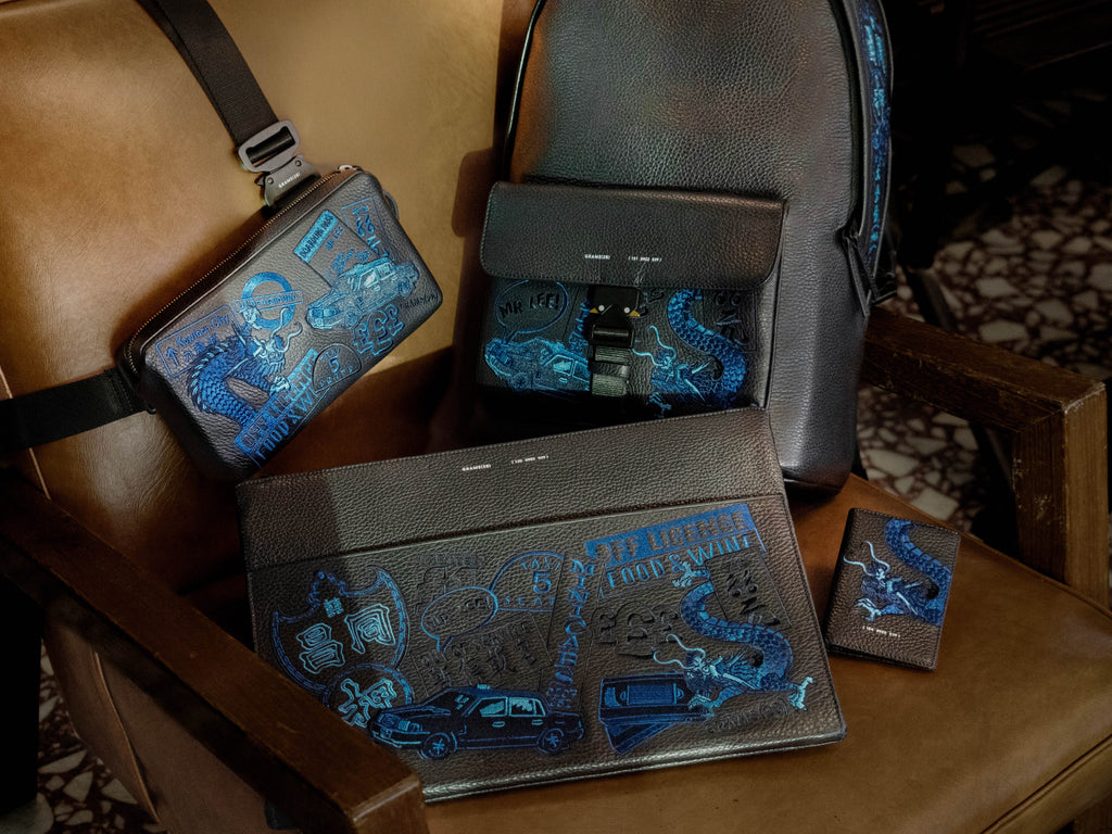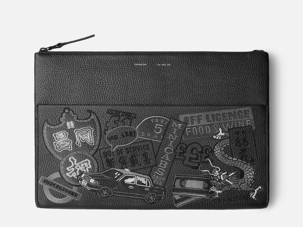 Part of the limited MR LEE x GRAMS28 collection, this version of our flagship Tech Folio features an embroidered design across the front, depicting a patchwork of cultural icons drawn by MR LEE. Give your tech a stylish home with this handsome, limited edition Folio.
